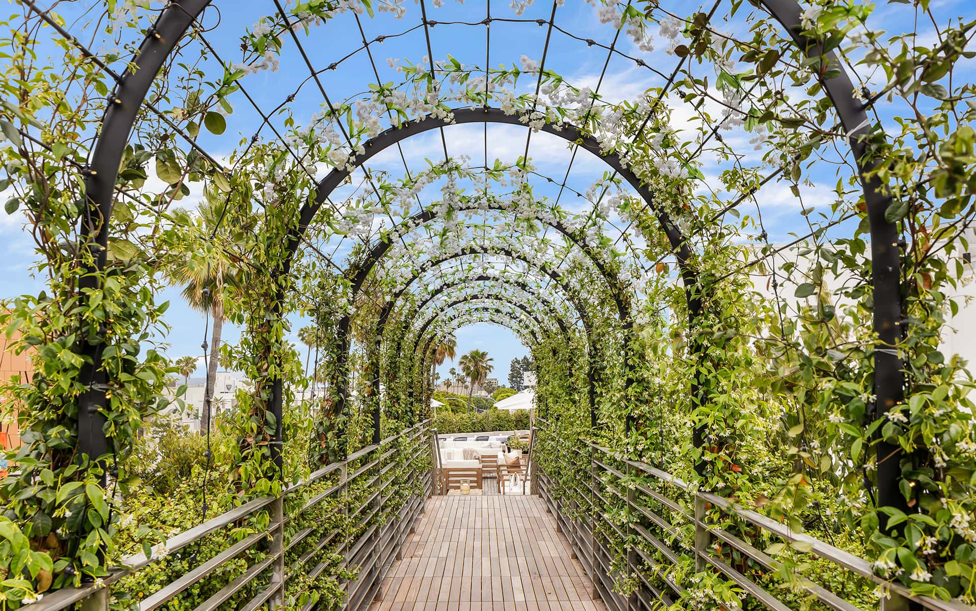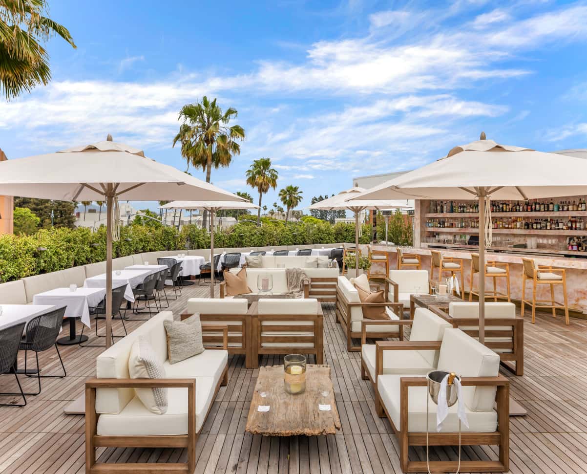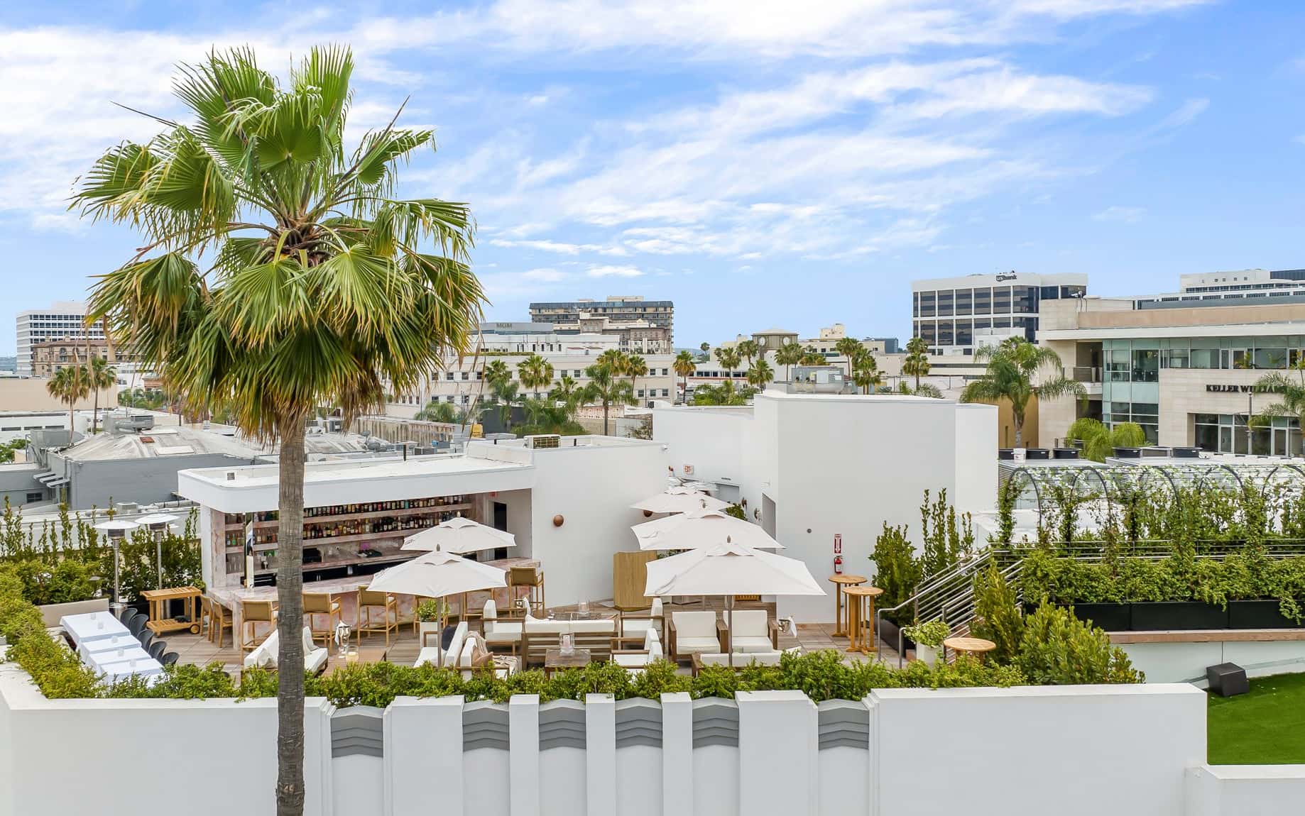 From this perch at Bar Funke, "you look out at all of Beverly Hills, the mountains, the Hollywood Hills, and gorgeous architecture,” notes Kurt Rappaport. Lush landscaping and comfortable seating ensures that the al fresco space is given equal attention to the considered interiors, and continues the overall flow.