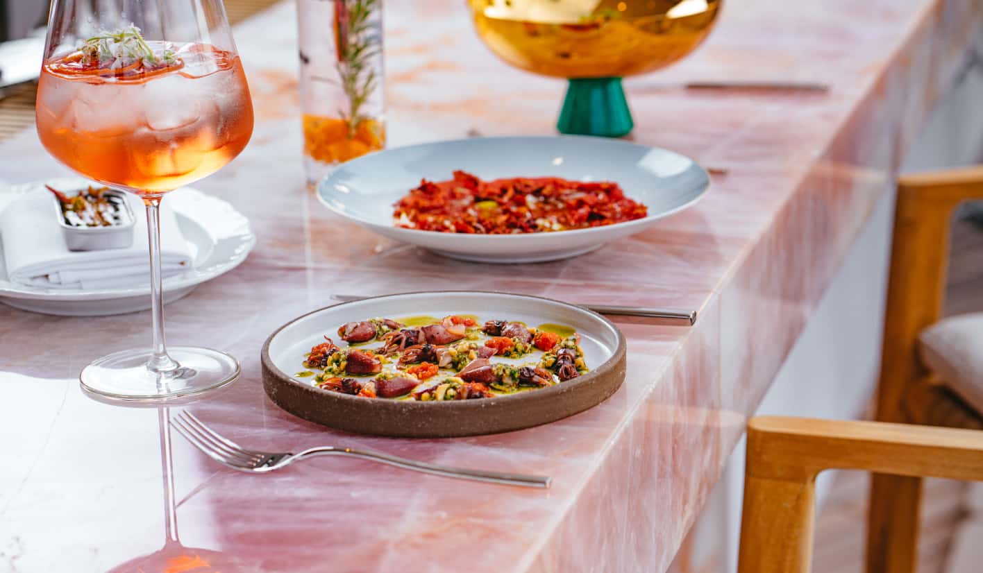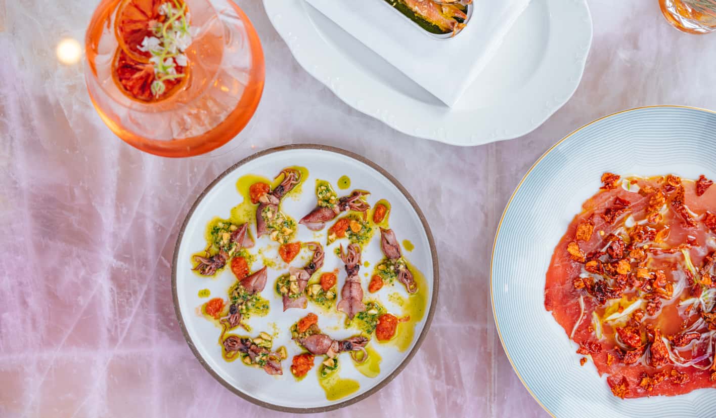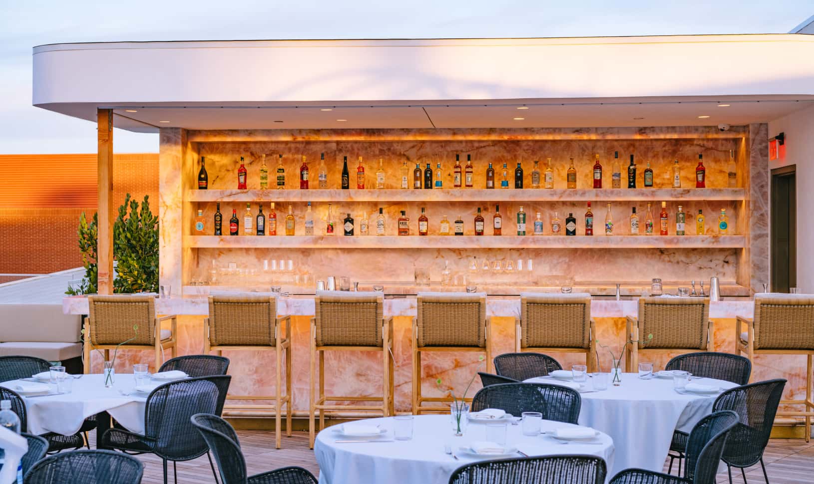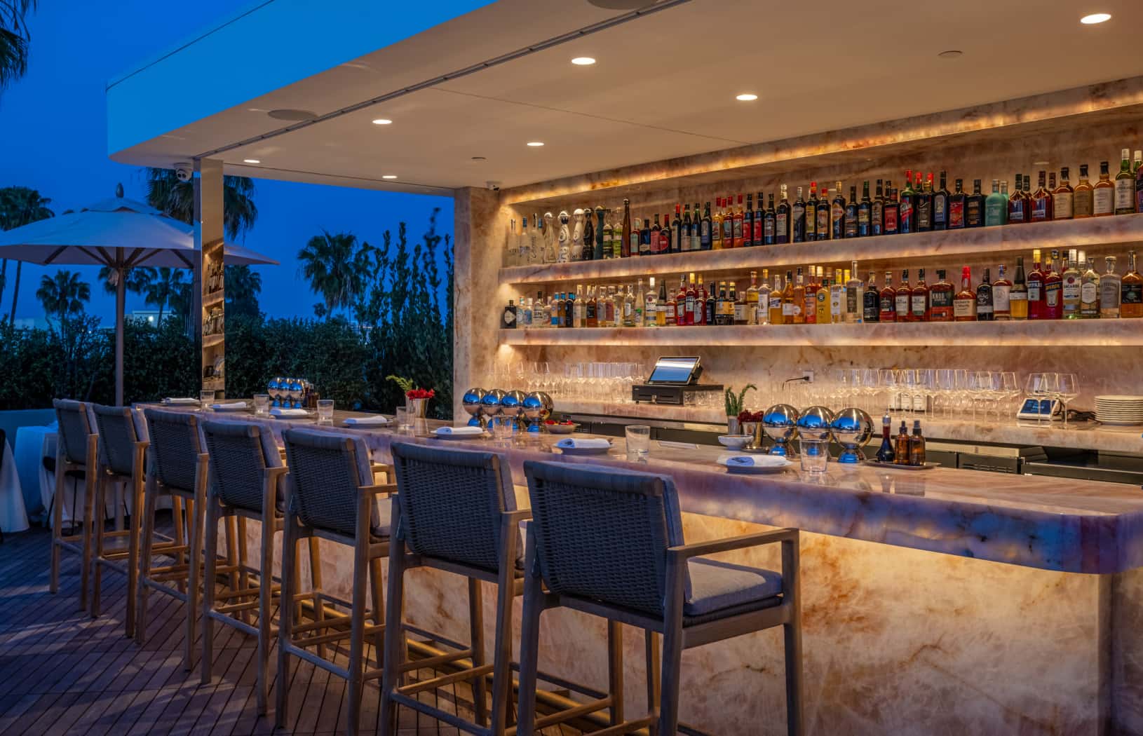 From this perch at Bar Funke, "you look out at all of Beverly Hills, the mountains, the Hollywood Hills, and gorgeous architecture,” notes Kurt Rappaport. Lush landscaping and comfortable seating ensures that the al fresco space is given equal attention to the considered interiors, and continues the overall flow.